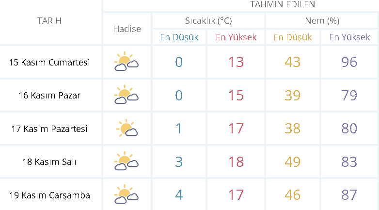 Öğleden sonra parçalı bulutlu bir havanın hakim olacağı tahmin edilirken, akşam saatlerinde yeniden hızlı bir şekilde soğuma bekleniyor. Gün boyu rüzgârın hafif seviyede eseceği tahmin edilse de özellikle sabah ve gece saatlerinde dışarı çıkacakların tedbirli olması öneriliyor.