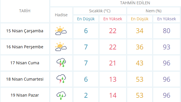 Gün içerisinde hava sıcaklığının 18-20 derece seviyelerine kadar yükselmesi öngörülürken, öğle saatlerinde güneş zaman zaman yüzünü gösterecek. Hafif rüzgar eşliğinde ılık bir hava hakim olurken, yağış ihtimali düşük görünüyor. Akşam saatlerine doğru ise sıcaklıkta belirgin bir düşüş yaşanacak. Özellikle gece saatlerinde termometrelerin 9-11 derece bandına gerilemesi bekleniyor. Gün genelinde sakin ve bahar havasının öne çıktığı bir gün yaşanacağı tahmin ediliyor.