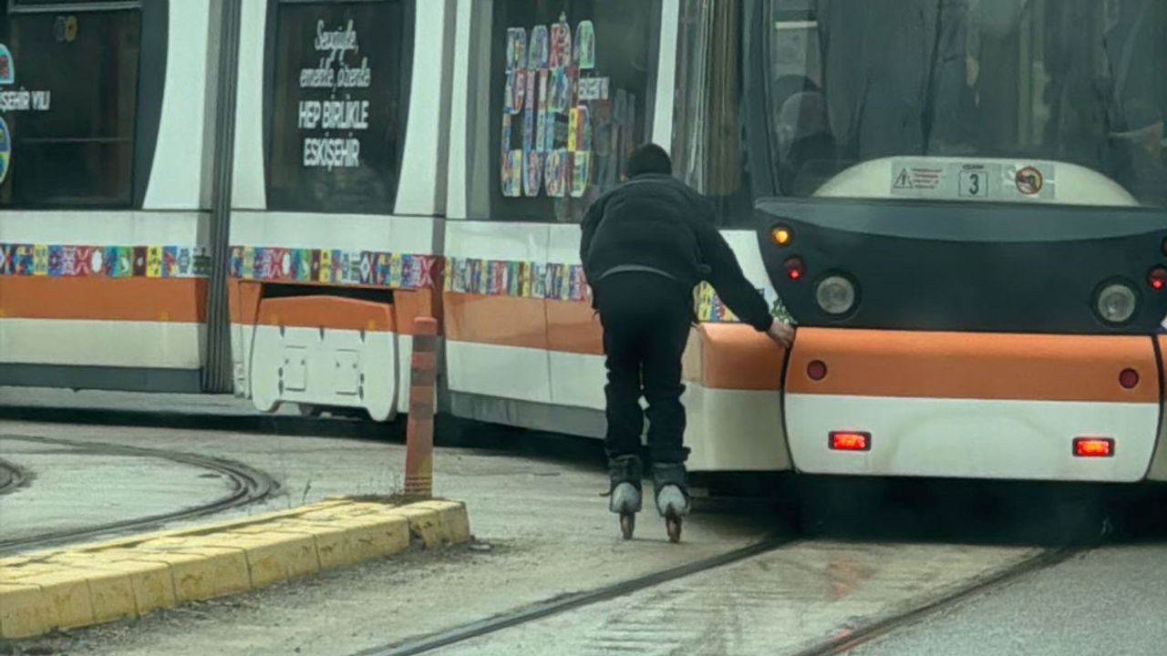 Eskişehir Uluönder Mahallesi Erzurum Kongresi Caddesi’nde yaşanan olayda, yaşı küçük bir erkek çocuk, hareket halindeki tramvayın arkasına tutunarak tehlikeli hareketler yaptı. Muhtemel bir kazaya davetiye çıkaran çocuk, görenlerin yüreklerini ağzına getirdi.