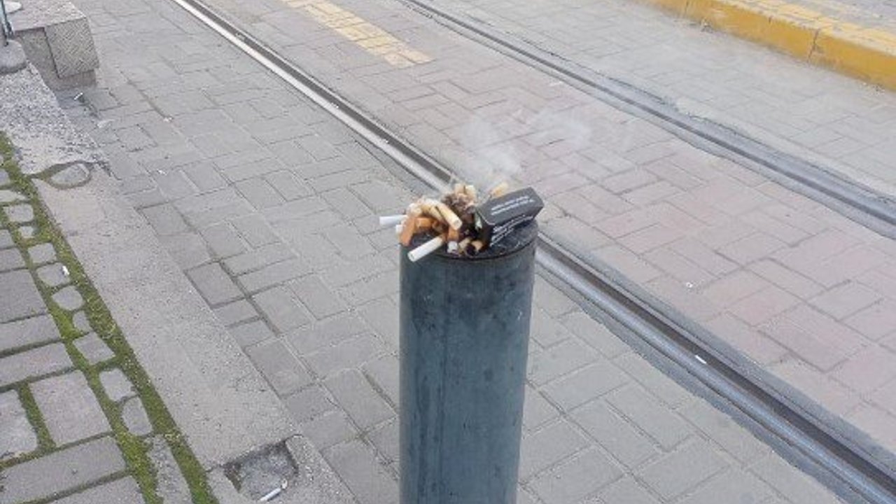 Eskişehir’de Eczacılık Tramvay Durağı’nda bulunan izmarit alanında oluşan yoğun birikim dikkat çekti. Gün içerisinde sık kullanılan durakta, sigara izmaritlerinin üst üste birikerek alanı tamamen doldurduğu görüldü. Yoğunluk nedeniyle bazı izmaritlerin ayrılan bölümün dışına taştığı ve yüzeyde duman izlerinin devam ettiği gözlemlendi. Özellikle durakta artan yolcu sirkülasyonunun, bu tür görüntülerin daha belirgin hale gelmesine neden olduğu ifade edildi.