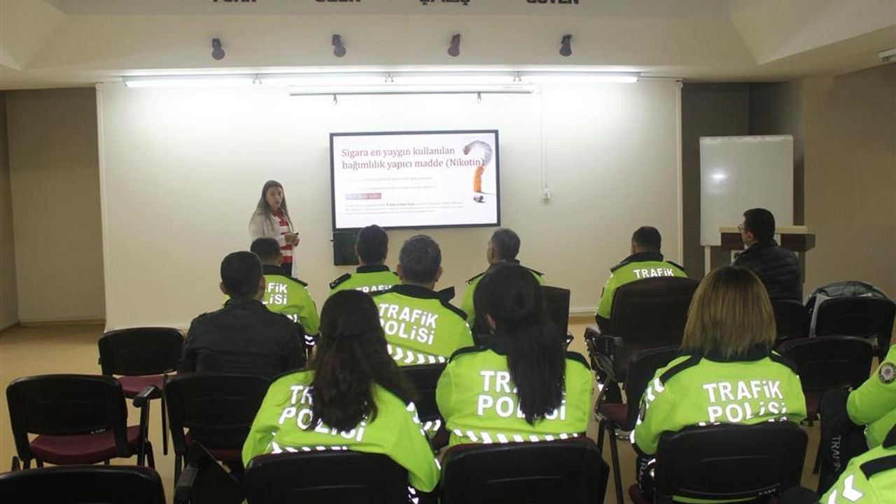 2024-2028 Tütün Kontrolü Strateji Belgesi doğrultusunda düzenlenen bu etkinlikte, Eskişehir Trafik Polis Eğitim Merkezi’nde görevli personellere, Dr. Pakize Gizem Topçu tarafından “Tütün ve Tütün Ürünlerinin Zararları” başlıklı bilgilendirme yapıldı.