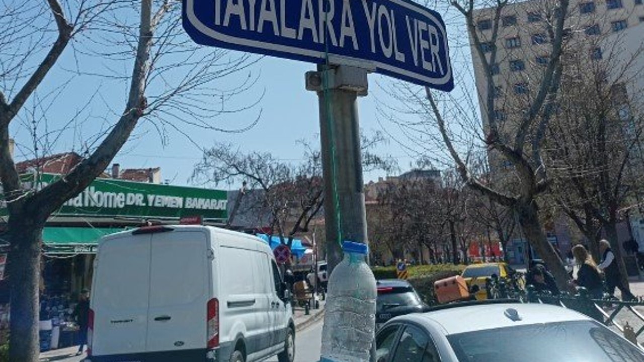 Eskişehir'de “Yayalara yol ver” uyarısının bulunduğu direğe iliştirilen şişenin, kamusal alanda oluşan küçük ama dikkat çeken bir görüntü oluşturduğu görüldü. Yoğun yaya ve araç trafiğinin bulunduğu noktada bu tür atıkların gelişigüzel bırakılması, çevrede dağınık bir görünüm ortaya çıkarırken, ortak kullanım alanlarının temizliği açısından da olumsuz bir tablo oluşturuyor.
