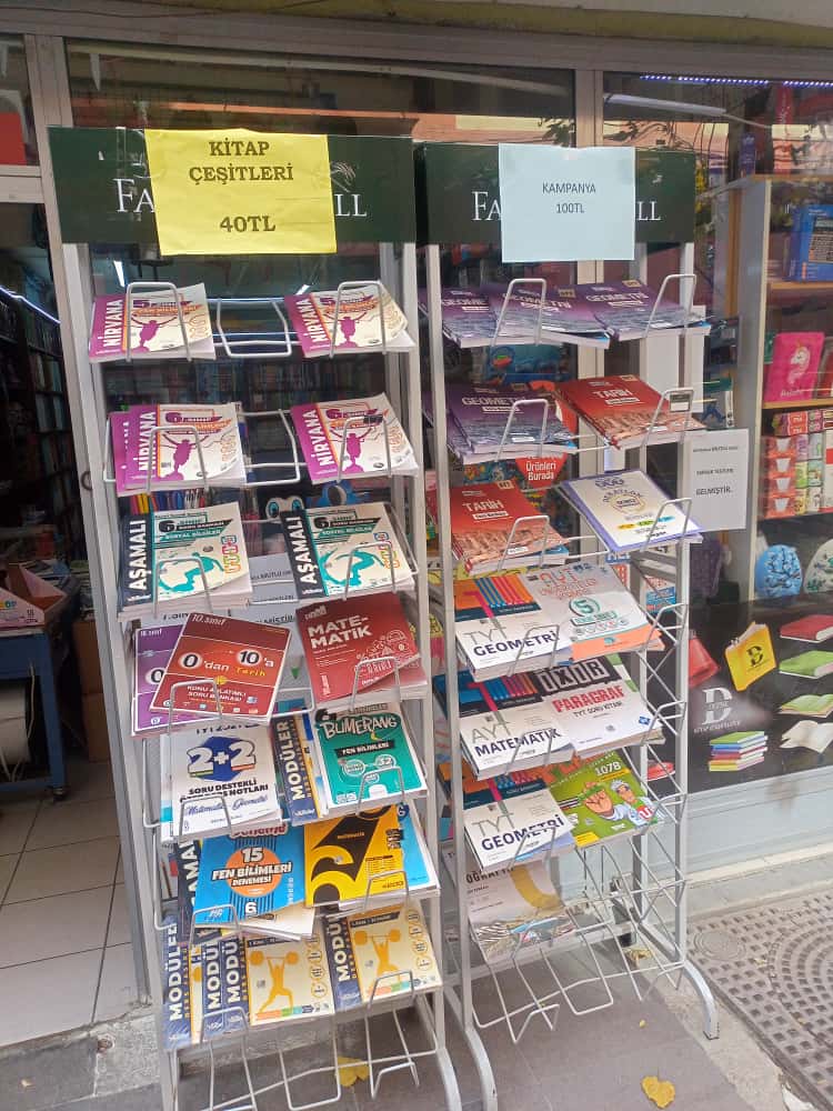 Postane Sokak’ta hizmet veren bir kırtasiye, öğrenciler için hazırladığı kampanyalı kitap ve test setleriyle ilgi görüyor. Raflarda sergilenen yardımcı kaynak kitaplar, 40 ve 100 lira arasında değişen fiyatlarla satışa sunuluyor.