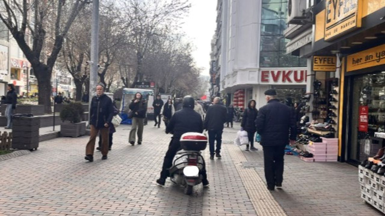 Eskişehir'de yayaların yoğun olarak kullandığı alanda ilerleyen motosiklet, olası bir kazaya davetiye çıkardı. Günün farklı saatlerinde kalabalığın eksik olmadığı Hamamyolu’nda motosikletin caddeye girmesiyle birlikte vatandaşlar tedirginlik yaşadı. Yaya yoğunluğunun yüksek olduğu noktada ilerleyen sürücü, özellikle çocuklar, yaşlılar ve bebek arabasıyla yürüyen aileler için risk oluşturdu. Bazı vatandaşlar duruma sözlü tepki gösterirken, bazıları ise motosikletin geçişi sırasında ani manevralarla kendini korumaya çalıştı.