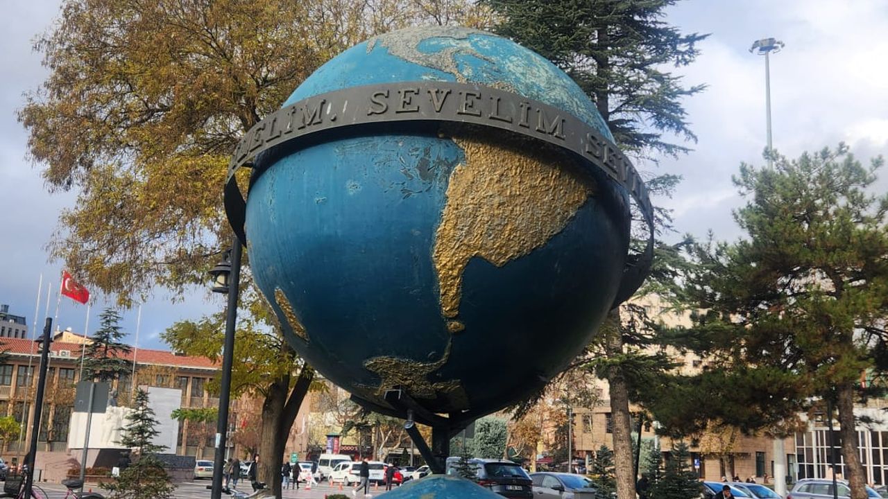 Eskişehir Vilayet Meydanı’nda yer alan ve üzerinde Yunus Emre’nin “Sevelim, Sevilelim” sözünün bulunduğu büyük dünya küresi, dikkat çeken kent simgelerinden biri. Mavi zemin üzerinde altın tonlarında işlenen kıtalar, anıta hem estetik hem de anlamlı bir görünüm kazandırırken, küre kent merkezindeki yoğun yaya trafiği içinde bir odak noktası oluşturuyor.