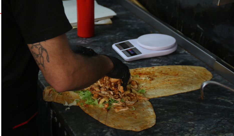 Eskişehir’in Tepebaşı ilçesi Fatih Mahallesi Orhan Oğuz Caddesi üzerinde faaliyet gösteren döner dükkânında, 1 kilogram ağırlığındaki tavuk dürüm müşterilerin ilgisini çekiyor. 6 Şubat 2023 tarihindeki depremlerin ardından Hatay’dan Eskişehir’e gelen 39 yaşındaki esnaf Suat Gelin, Hatay usulü tavuk dönerini özel sos ve yeşilliklerle hazırlayarak satışa sundu.