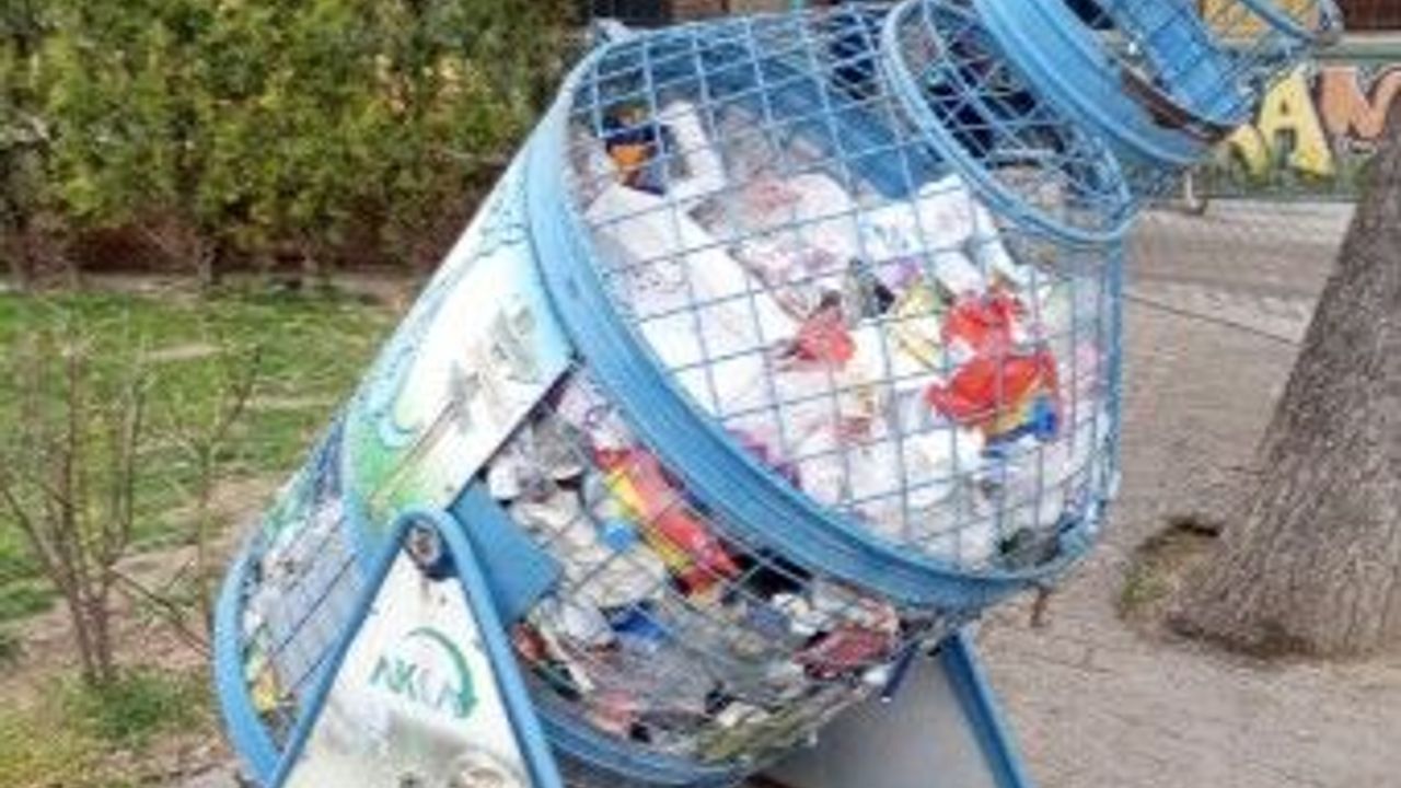 Yoğun yaya hareketliliğinin olduğu bölgede bulunan geri dönüşüm noktasının bu hali, hem çevre düzeni hem de atık ayrıştırma bilinci açısından sorun oluşturuyor.
