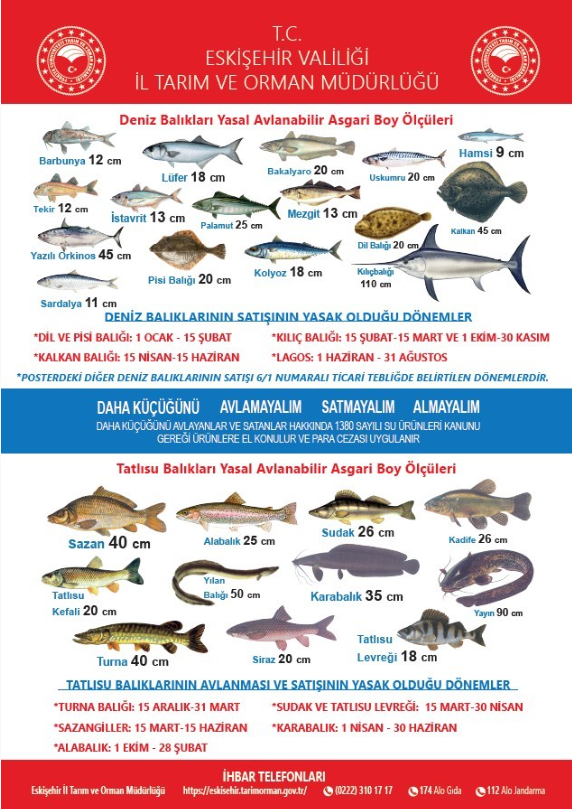 Eskişehir İl Tarım ve Orman Müdürlüğü tarafından düzenlenen bilgilendirme toplantısında, su ürünleri avcılığına dair boy, zaman ve tür yasakları hakkında detaylı açıklamalarda bulunuldu. Toplantı kapsamında, 1380 sayılı Su Ürünleri Kanunu’nun 23. maddesi ile 6/1 No’lu Ticari Amaçlı Su Ürünleri Avcılığının Düzenlenmesi Hakkında Tebliğ çerçevesinde hazırlanan afiş kartelaları tanıtıldı.