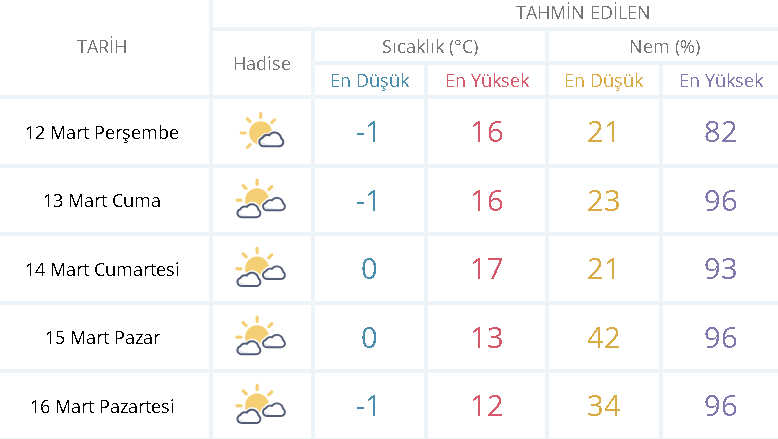 Kentte gün boyunca önemli bir yağış beklenmezken, gökyüzünün parçalı bulutlu olacağı tahmin ediliyor. Hafif rüzgârın etkili olduğu şehirde vatandaşlar özellikle öğle saatlerinde açık alanlarda vakit geçirmeyi tercih ediyor. Uzmanlar sabah ve gece saatlerinde sıcaklığın belirgin şekilde düşeceğine dikkat çekerek, vatandaşların özellikle akşam saatlerinde dışarı çıkarken tedbirli olmalarını öneriyor. Mart ayının ortalarına gelinirken Eskişehir’de baharın etkisini hissettirmeye başladığı görülüyor.