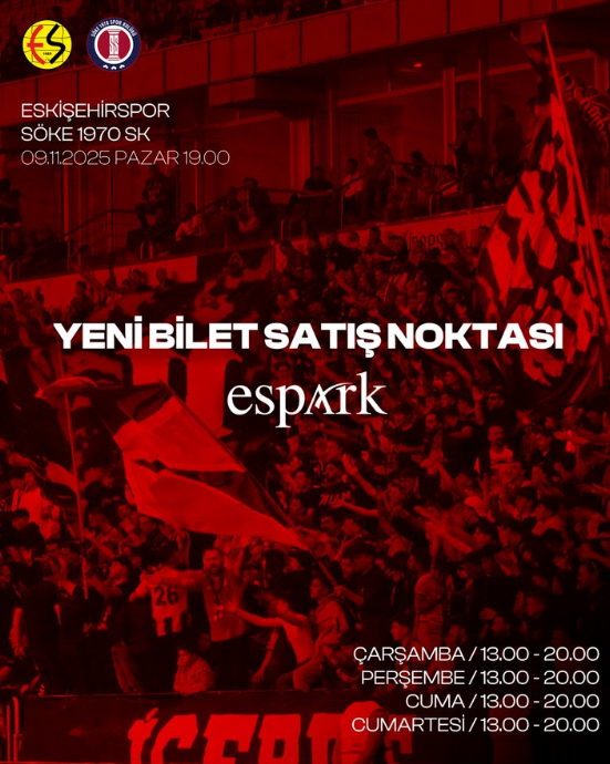 9 Kasım Pazar günü saat 19.00’da gerçekleşecek Söke 1970 SK karşılaşmasının biletleri, Espark AVM’de taraftarların satışına sunuldu. Biletler, Çarşamba, Perşembe, Cuma ve Cumartesi günleri 13.00 – 20.00 saatleri arasında Espark AVM bilet satış noktasından temin edilebilecek.