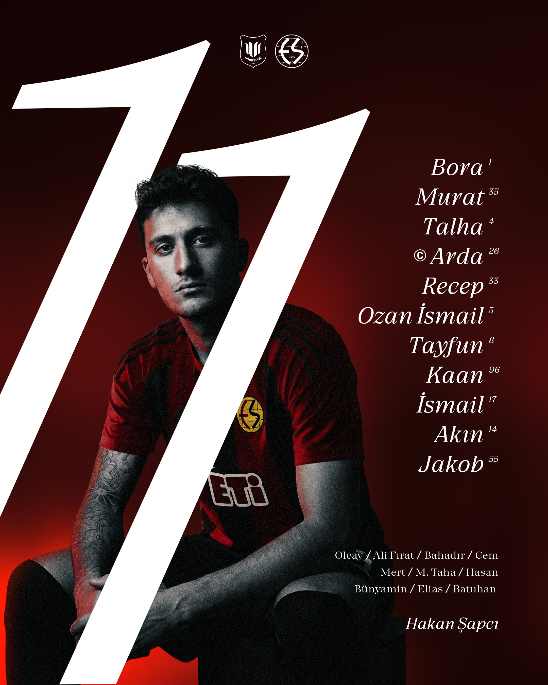 Eskişehirspor’un savunma dörtlüsü Murat, Talha, Arda ve Recep’ten oluşurken, orta sahada Ozan İsmail ve Tayfun görev alacak. Oyun kurulumunda ve hücum geçişlerinde takımın temposunu Kaan belirleyecek.