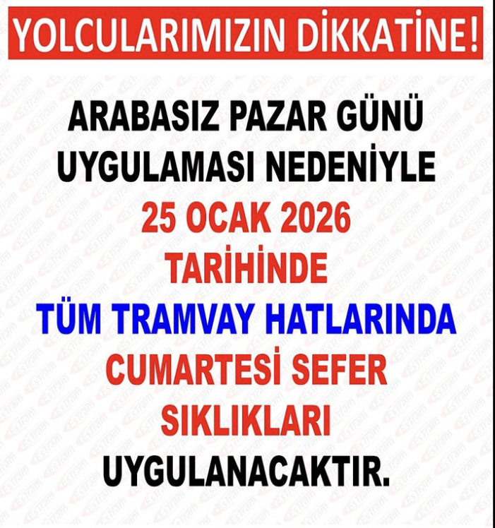 Belediye yetkililerinin duyurusuna göre, söz konusu tarihte kentte tüm tramvay hatlarında sefer sıklıkları, Cumartesi günleri uygulanan tarifeye göre gerçekleştirilecek. Bu kapsamda yolcuların seyahat planlarını yaparken sefer saatlerini dikkate almaları önem taşıyor.