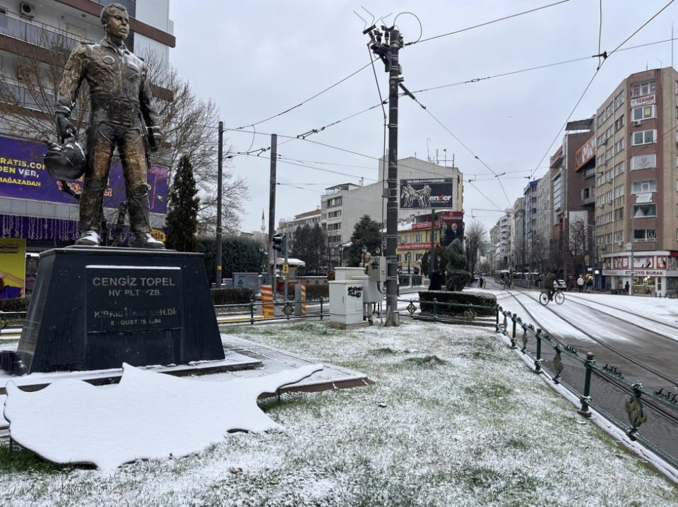 Kent merkezinde kar daha hafif yağarken, tarihi Odunpazarı Evleri’nin çatılarındaki beyaz örtü, adeta kartpostallık bir manzara oluşturdu. Gece saatlerinde hava sıcaklıklarının düşmesiyle birlikte Porsuk Çayı’nın bazı bölümleri buzla kaplandı ve kente ayrı bir güzellik kattı.