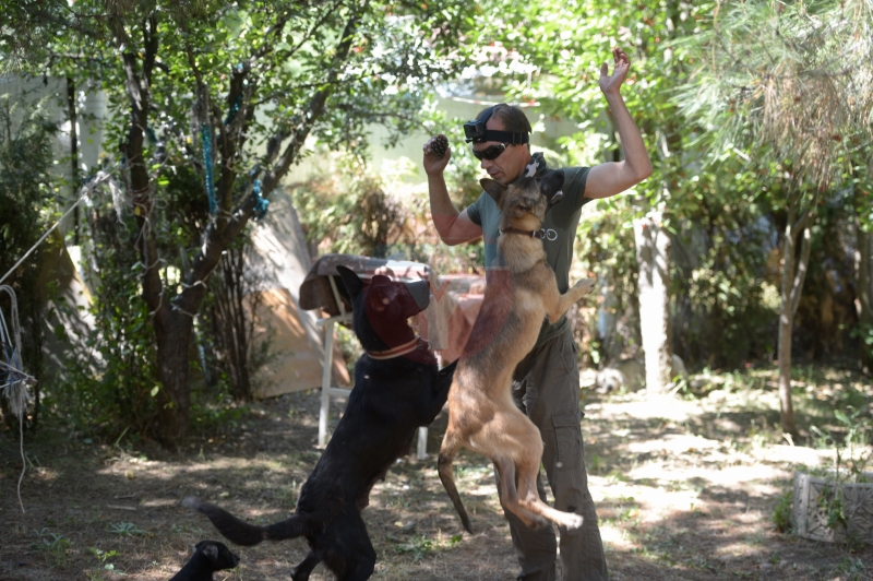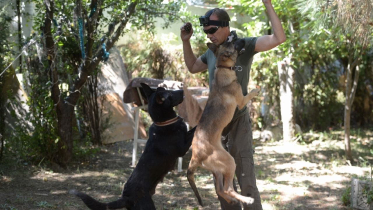 KURT KÖPEKLERİNİ EĞİP EMNİYETE VERİYOR