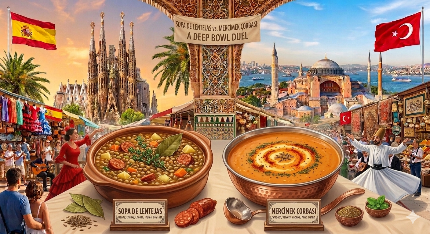 Son olarak İspanya'ya giderseniz Türk mutfağının vazgeçilmez başlangıç yemeği olan mercimek çorbasının bir benzeri olan "Sopa de Lentejas" görürseniz şaşırmayın.