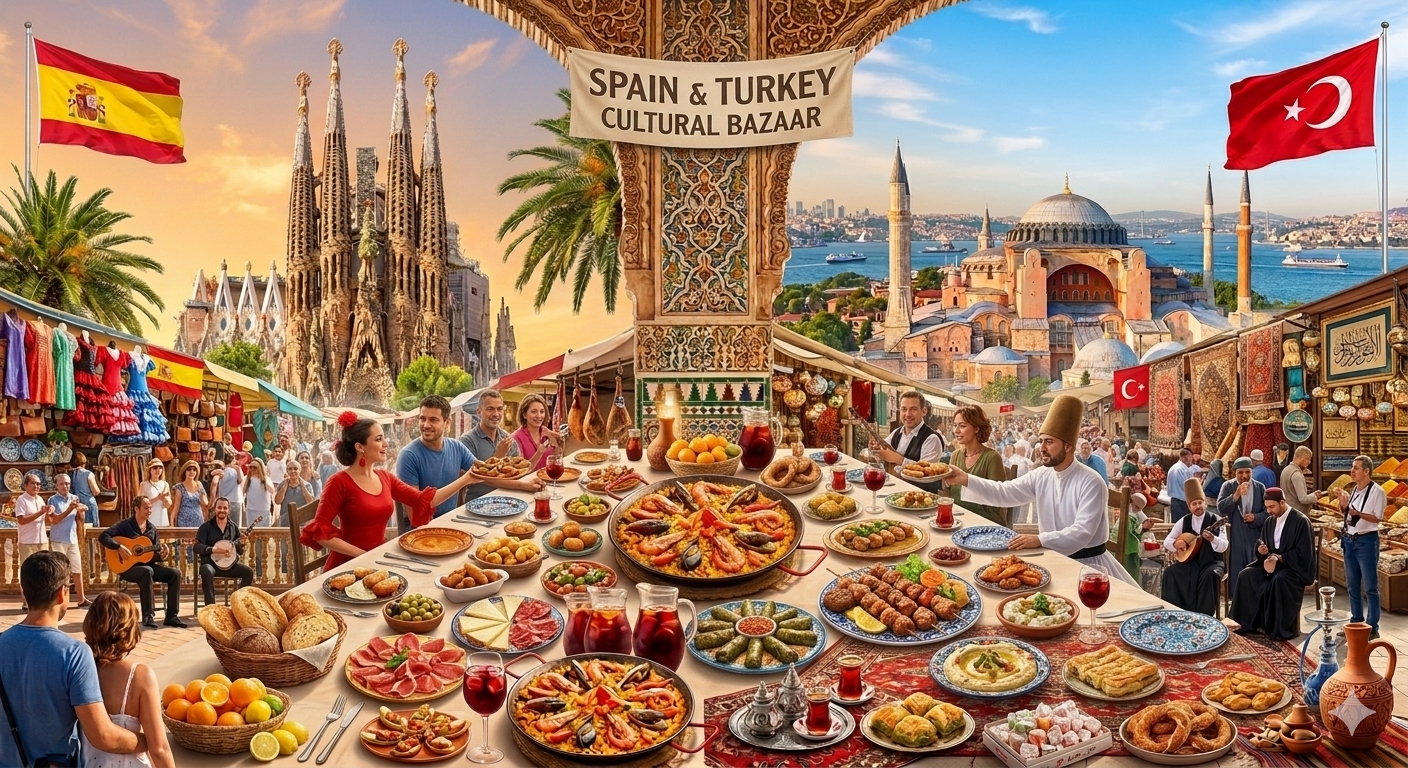 Türk ve İspanyol yemek kültüründe yer alan zeytinyağı, taze sebze ve deniz ürünleri kullanımının öne çıktığı her iki ülke mutfağı, Akdeniz’in sağlıklı beslenme anlayışını yansıtıyor.