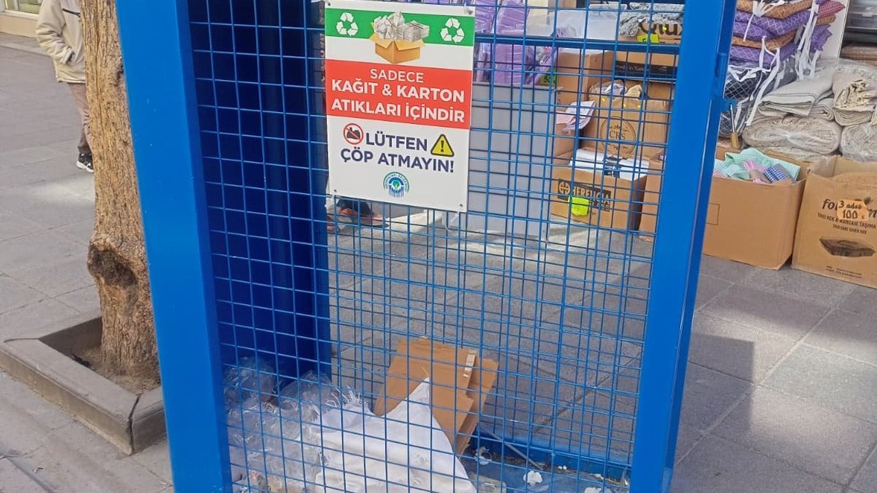 Eskişehir'de cadde üzerinde konumlandırılan bu noktanın, çevredeki esnaf ve vatandaşların geri dönüşüm ihtiyacını karşılaması amaçlanıyor. Sadece kağıt ve karton atıkları için ayrıldığı belirtilen alanda, ilk saatlerden itibaren karton kutu ve ambalaj atıklarının bırakıldığı görüldü. Üzerindeki uyarı levhalarında farklı türde atıkların bırakılmaması gerektiği açık şekilde ifade ediliyor.