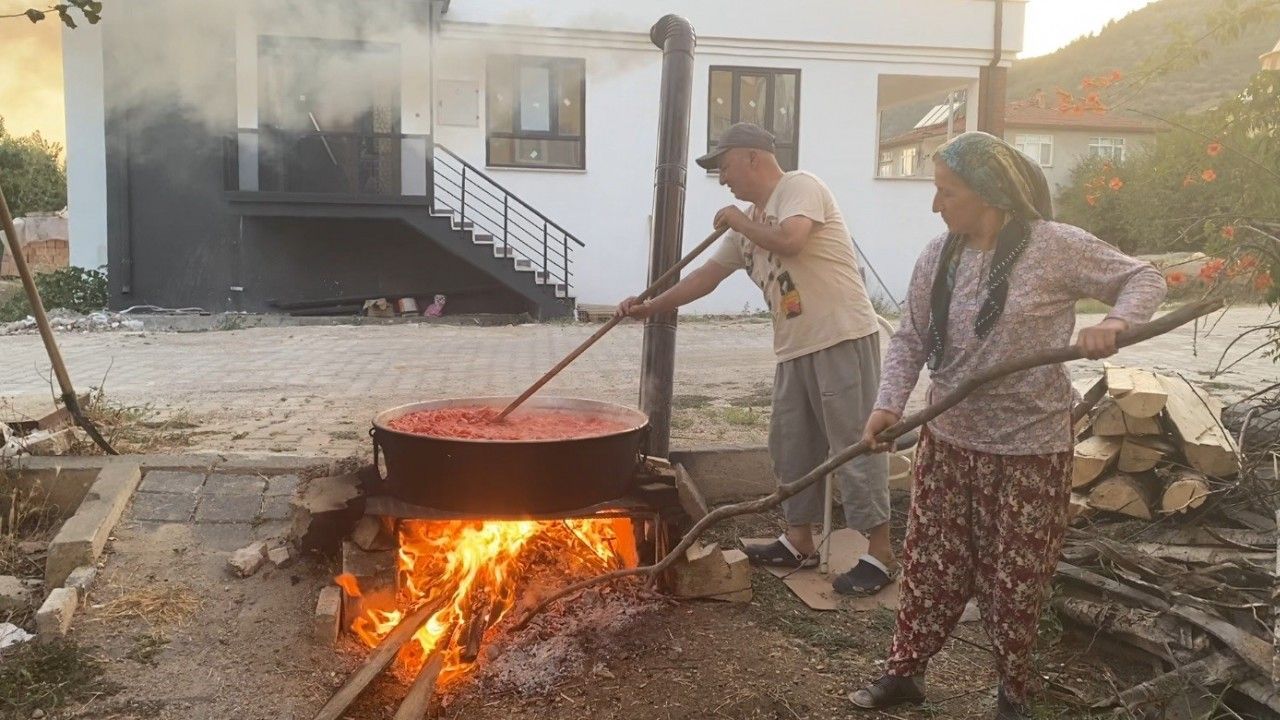 Gölpazarı’nda salça yapan Fatma Ünal, domateslerin yerli olduğunu anlatarak, "Bu sene 20 kasa yani 400 kilo aldık. Üç kardeş olunca salçayı çok yapıyoruz. Çok elden geçiyor yalnız. İlk olarak yıkıyoruz, ardından doğramasını yapıyoruz, sonra koyup kaynatıyoruz. Kaynağında ardından öğütme makinesinden geçiriyoruz. Daha sonra ilistirden geçiriyoruz, ardından çekirdek kalmasın diye ilistirden bir daha geçiyor. Ondan sonra kazana döküyoruz ve koyulaşıncaya kadar kaynatıyoruz" dedi.