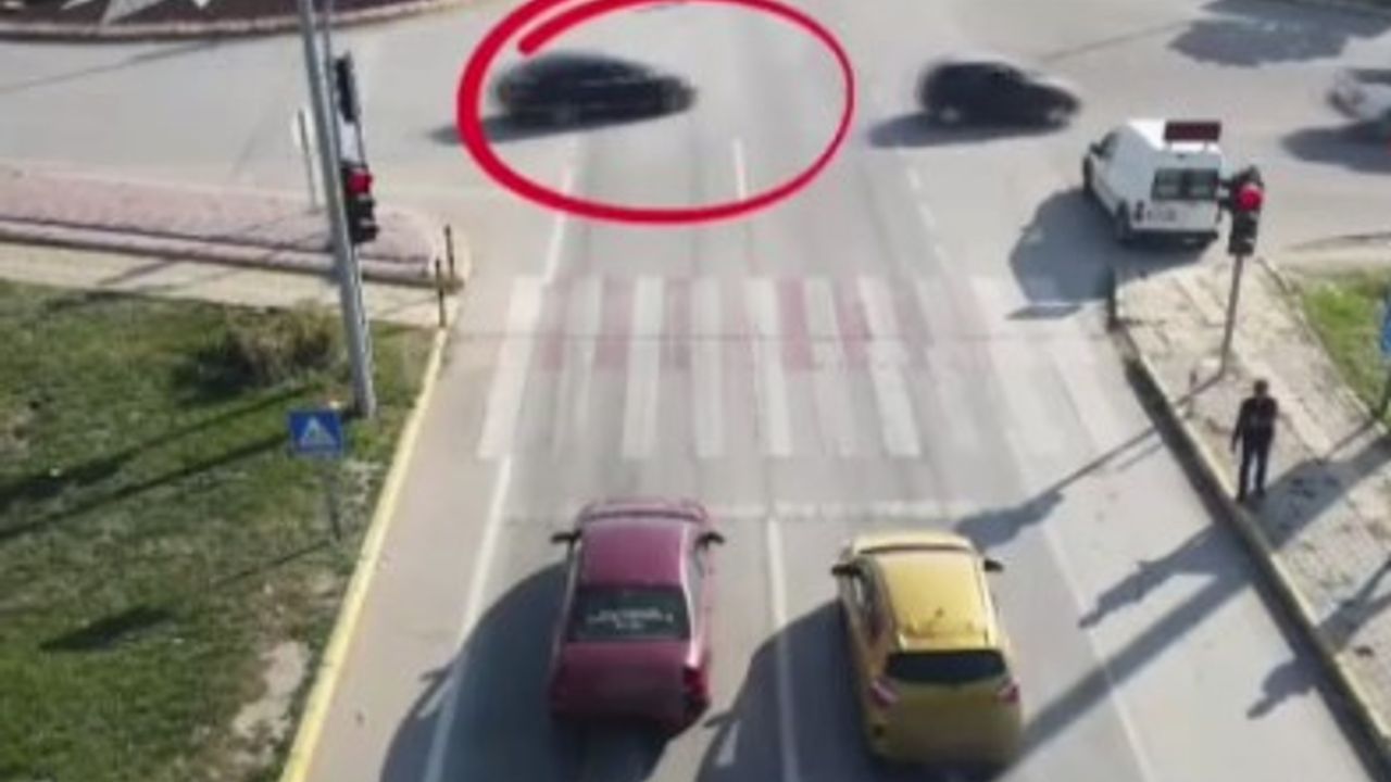 Dron kamerasına yansıyan görüntülerde, aracın kavşağa hızla girip lastikleri yaktırarak kontrolsüz şekilde manevra yaptığı anlar dikkat çekti. Olayı fark eden ekipler, kısa sürede aracı durdurarak sürücüyü yakaladı.