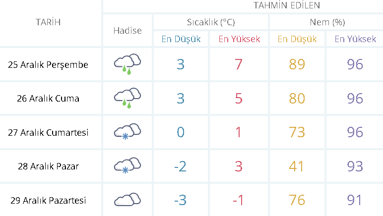 Eskişehir’de 25 Aralık 2025 Perşembe günü kış şartlarının etkisini sürdürmesi bekleniyor. Meteorolojik tahminlere göre kent genelinde hava çok bulutlu ve yağışlı olacak. Gün içerisinde sıcaklıkların 5–7 derece civarında seyretmesi, gece saatlerinde ise 0 dereceye yaklaşması öngörülüyor.