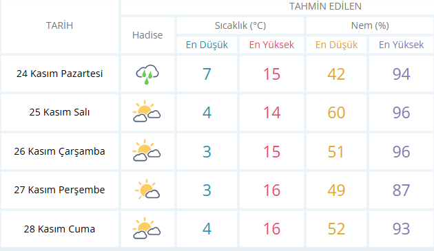 Hava sıcaklıklarında önemli bir değişiklik öngörülmezken, rüzgârın batı yönlerinden hafif, yer yer orta kuvvette esmesi bekleniyor. Meteorolojik uyarı yapılması gerektiren bir durum bulunmadığı da bildirildi.
