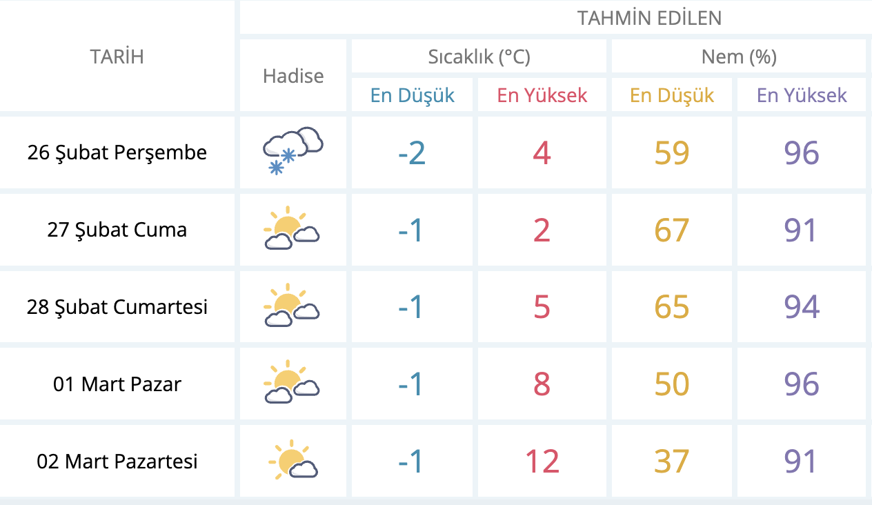 Yetkililer tarafından yapılmış güncel bir meteorolojik uyarı bulunmuyor; ancak ani sıcaklık düşüşü, kar geçişleri ve kuvvetli rüzgâr nedeniyle özellikle sürücülerin dikkatli olması gerekiyor.