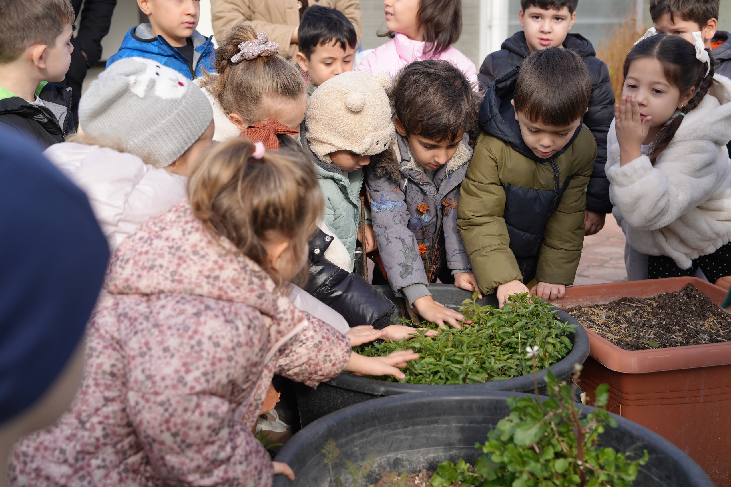 Etkinlikte, seralarda çiçek dikimi yapan çocuklar, ardından tohum çeşitlerini, ekim ve sulama yöntemlerini öğrenerek fideleri toprakla buluşturdu. Tohum bankasını da tanıma fırsatı bulan minikler, evlerinden getirdikleri sebze ve meyve atıkları ile yeşil alanlardan toplanan kuru yaprak ve dallardan kompost hazırladı.