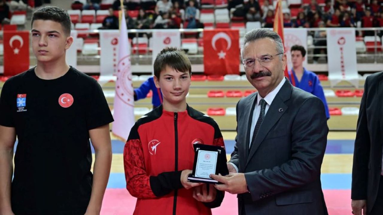 Şahinspor’un genç ve başarılı tekvandocusu Utku Efe, ulusal ve uluslararası arenalarda hem kulübünü hem ülkemizi temsil ediyor. Efe, geçtiğimiz aylarda Avrupa Poomsae Şampiyonasında 2 bronz madalya kazanmıştı. Dün gerçekleşen Amatör Spor Haftası açılış töreninde Utku Efe’ye plaket takdim edildi. Efe’nin plaketini Eskişehir Valisi Hüseyin Aksoy verdi. Antrenör İsa Şahin talebesini tebrik ederek başarılarının devamını diledi.