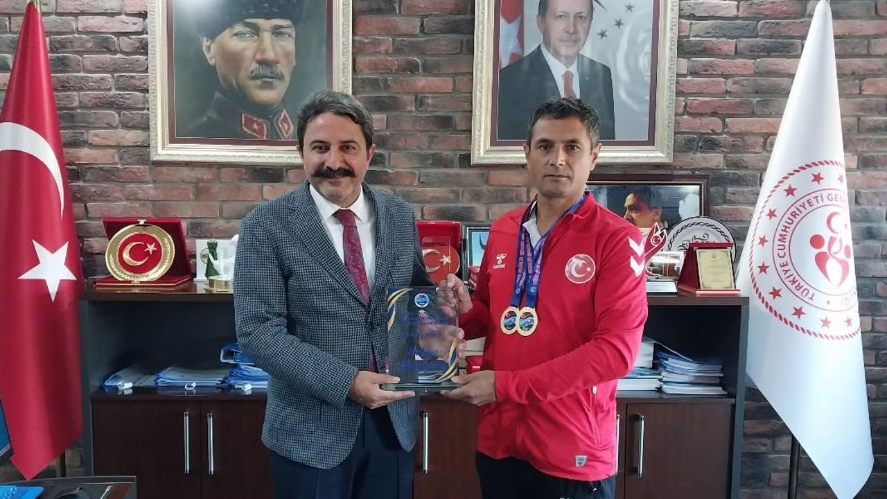 Eskişehir Büyükşehir Gençlik ve Spor Kulübü’nün su altında görüntüleme - su altı fotoğrafçılığı ve video sporcusu olan Erkan Balk, İspanya'da yapılacak olan Dünya Sualtı Görüntüleme Şampiyonası'na hazırlıklarını sürdürüyor. Daha önce dünya şampiyonluğu bulunan Balk, İspanya yolcuğu öncesi Eskişehir Gençlik ve Spor İl Müdürü Hasan Kalın ile bir araya geldi. Balk Müdür Kalın’a şampiyonalar hakkında bilgiler verdi. Kısa bir açıklama yapan Balk, “İspanya öncesi Gençlik ve Spor İl Müdürümüz Hasan Kalın bey ile görüştük. Destekleri için çok teşekkür ediyorum” derken Müdür Kalın ise sporcumuza başarılar diledi.
