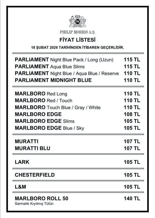 Philip Morris A.Ş. tarafından paylaşılan güncel listeye göre zamlı fiyatlar 18 Şubat 2026 itibarıyla geçerli oldu. Raflara yansıyan artışlarda döviz kurlarındaki dalgalanma ile üretim ve dağıtım maliyetlerindeki yükselişin belirleyici olduğu ifade ediliyor.