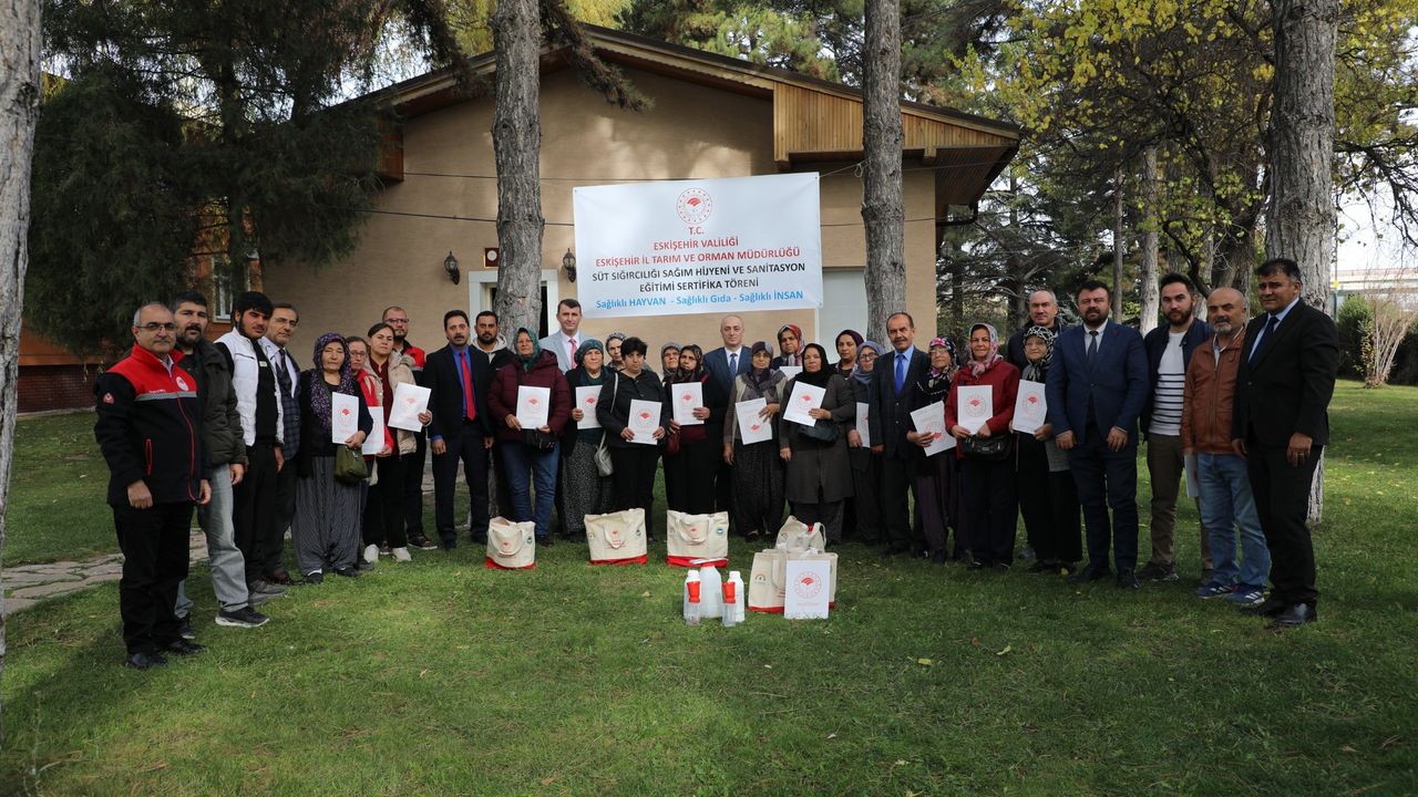 Eğitim sonunda İl Tarım ve Orman Müdürü Yüksel Çil’in katılımıyla düzenlenen törende yetiştiricilere katılım sertifikası, birer adet buzağı biberonu, sağım öncesi ve sonrası daldırma kapları, meme dezenfektanı ve 25 adetlik mastit test kartı içeren sağım hijyen seti takdim edildi.