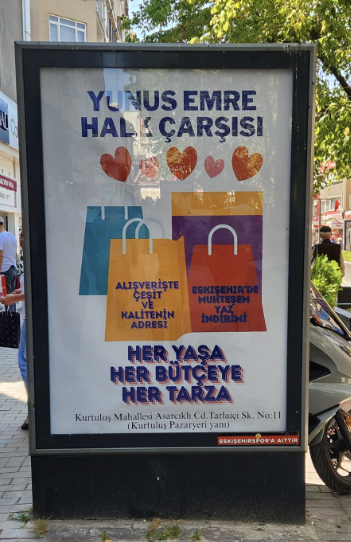 Son günlerde ise dikkat çeken bir değişiklik yaşandı. Çarşının farklı noktalarına “Her yaşa, her bütçeye, her tarza uygun” sloganıyla afişler asıldı. Kentin çeşitli billboardlarında da yer bulan bu kampanya, halk çarşısını yeniden Eskişehirlilerin gündemine taşımayı hedefliyor.